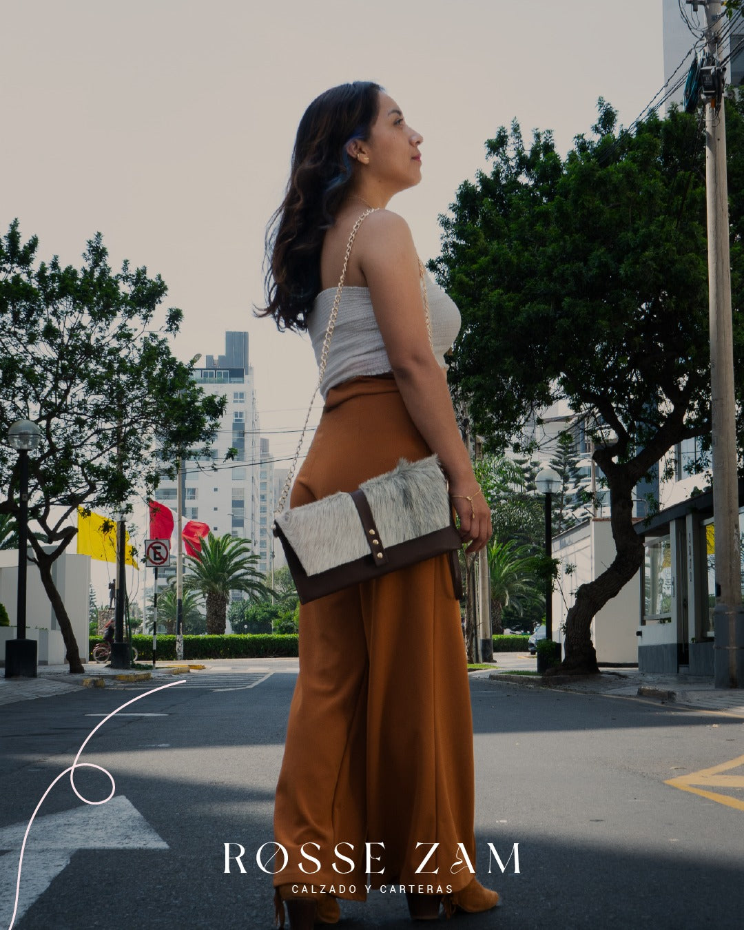 La Cartera Nébula Eco combina biocuero reciclado con pelo de cabra natural 🐐, creando una pieza única y consciente. Ideal para quienes buscan estilo y responsabilidad en un solo accesorio.