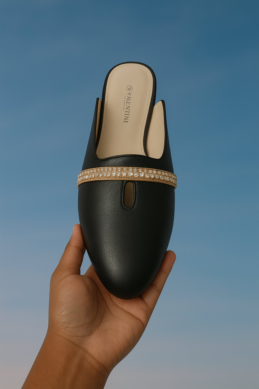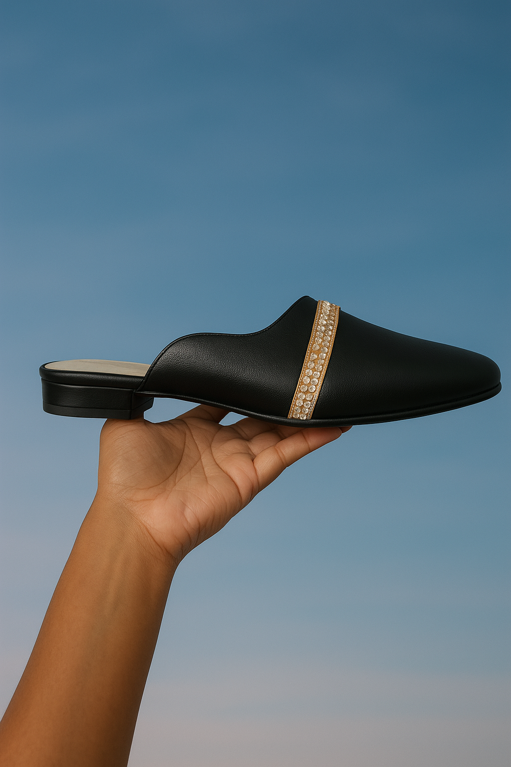 El Mule Clásico Ébano está elaborado en cuero legítimo 100% natural 🖤, brindando un acabado suave, firme y duradero. Su diseño abierto y cómodo es perfecto para looks frescos y sofisticados.
